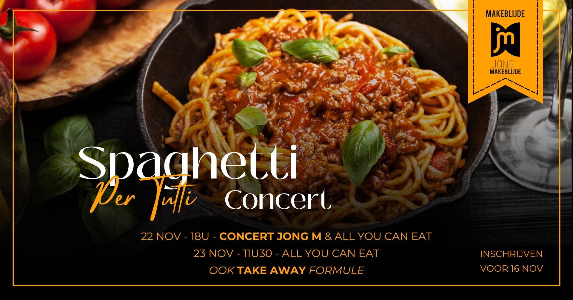 Jong Makeblijde en Dameskoor Makeblijde zetten de pannen op het vuur voor een heerlijk spaghettiweekend. Op zaterdagavond 22/11 krijg je een muzikale amuse van Jong Makeblijde, gevolgd door een smakelijke portie all-you-can-eat spaghetti. Zondag 23/11 houden we het lekker relaxed met een gezellige lunch in goed gezelschap.